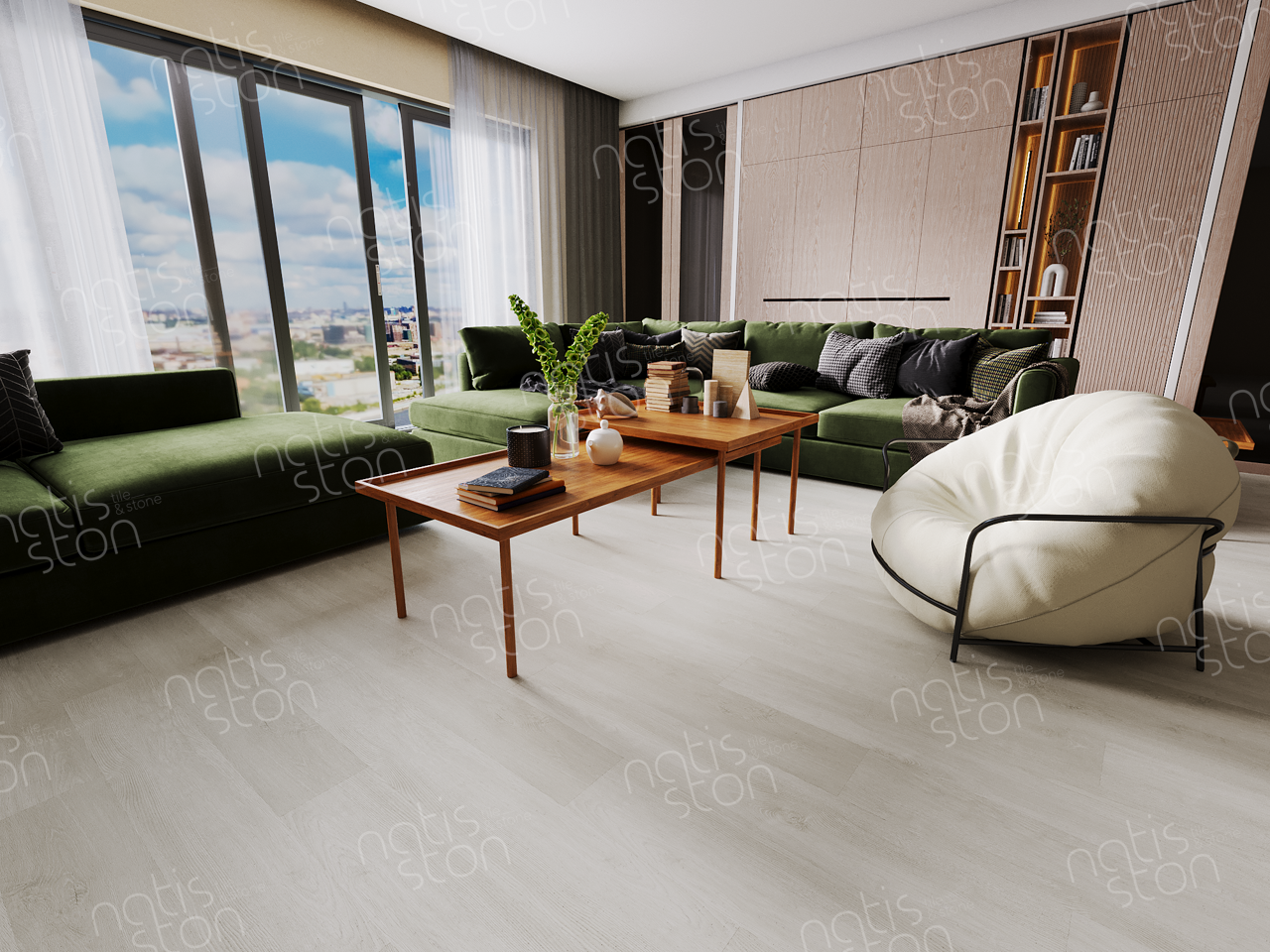 Natisston SPC - полностью водонепроницаемое* модульное покрытие с замковой системой соединения – «плавающий пол», с отличными акустическими и тепловыми свойствами. Это покрытие является прочным и жестким из-за большого содержания (более 70%) каменной крошки в составе.