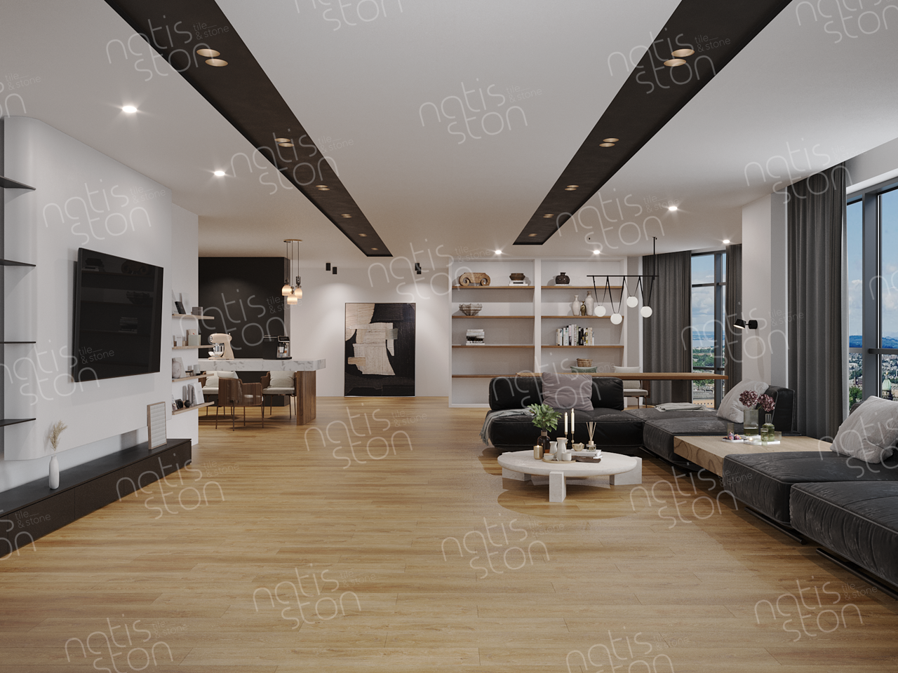 Natisston SPC - полностью водонепроницаемое* модульное покрытие с замковой системой соединения – «плавающий пол», с отличными акустическими и тепловыми свойствами. Это покрытие является прочным и жестким из-за большого содержания (более 70%) каменной крошки в составе.