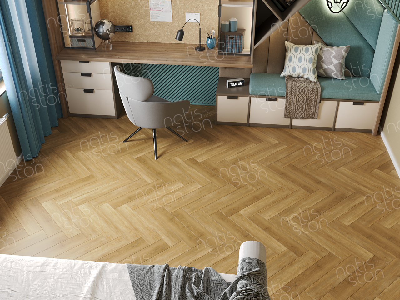 Natisston SPC - полностью водонепроницаемое* модульное покрытие с замковой системой соединения – «плавающий пол», с отличными акустическими и тепловыми свойствами. Это покрытие является прочным и жестким из-за большого содержания (более 70%) каменной крошки в составе.