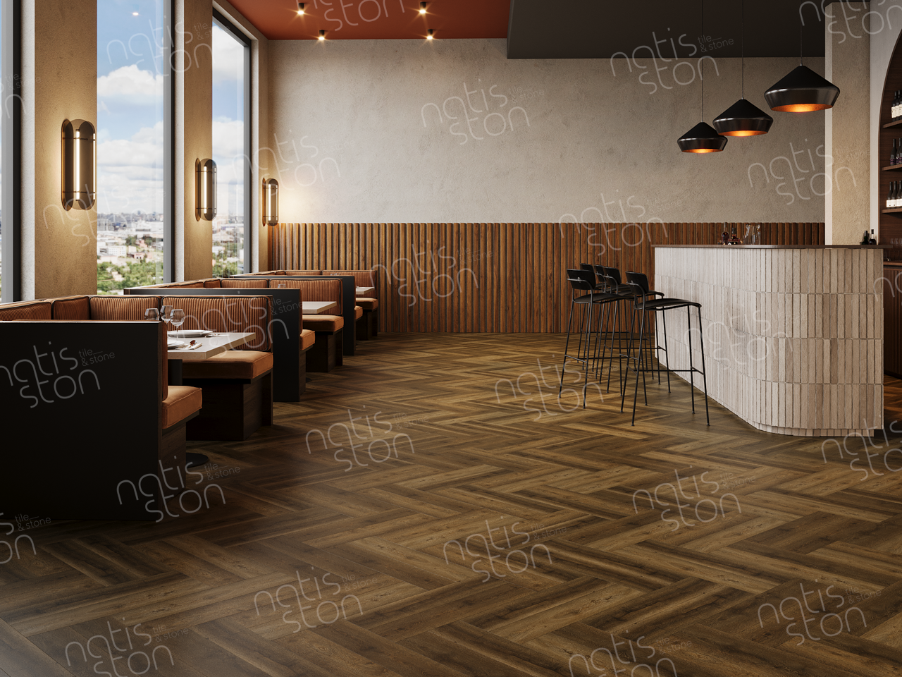 Natisston SPC - полностью водонепроницаемое* модульное покрытие с замковой системой соединения – «плавающий пол», с отличными акустическими и тепловыми свойствами. Это покрытие является прочным и жестким из-за большого содержания (более 70%) каменной крошки в составе.