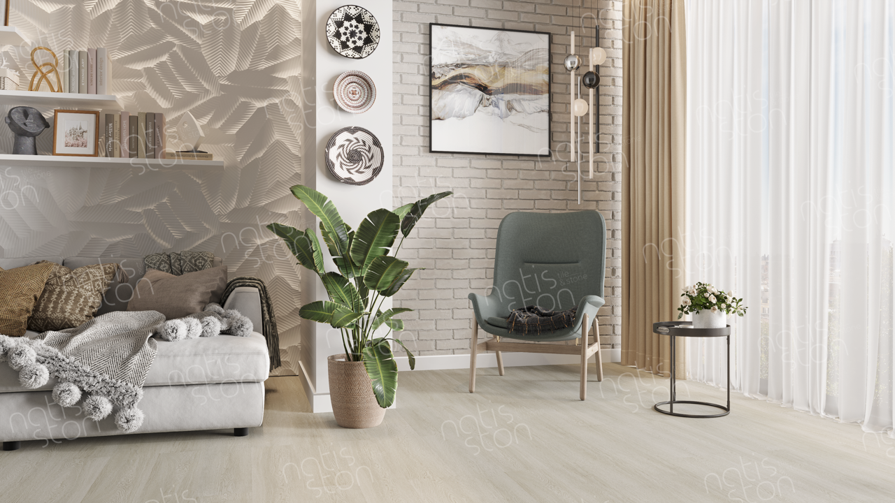 Natisston SPC - полностью водонепроницаемое* модульное покрытие с замковой системой соединения – «плавающий пол», с отличными акустическими и тепловыми свойствами. Это покрытие является прочным и жестким из-за большого содержания (более 70%) каменной крошки в составе.