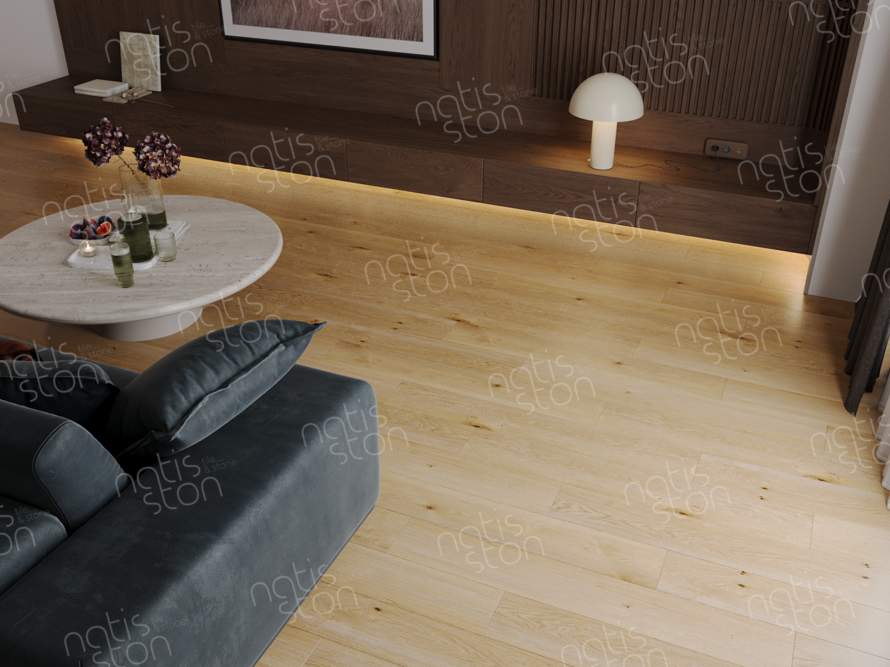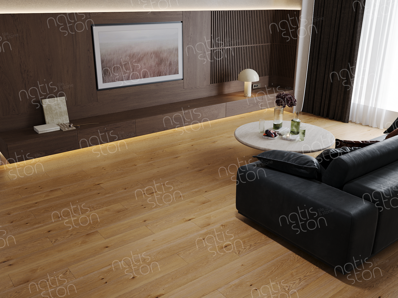 Natisston SPC - полностью водонепроницаемое* модульное покрытие с замковой системой соединения – «плавающий пол», с отличными акустическими и тепловыми свойствами. Это покрытие является прочным и жестким из-за большого содержания (более 70%) каменной крошки в составе.