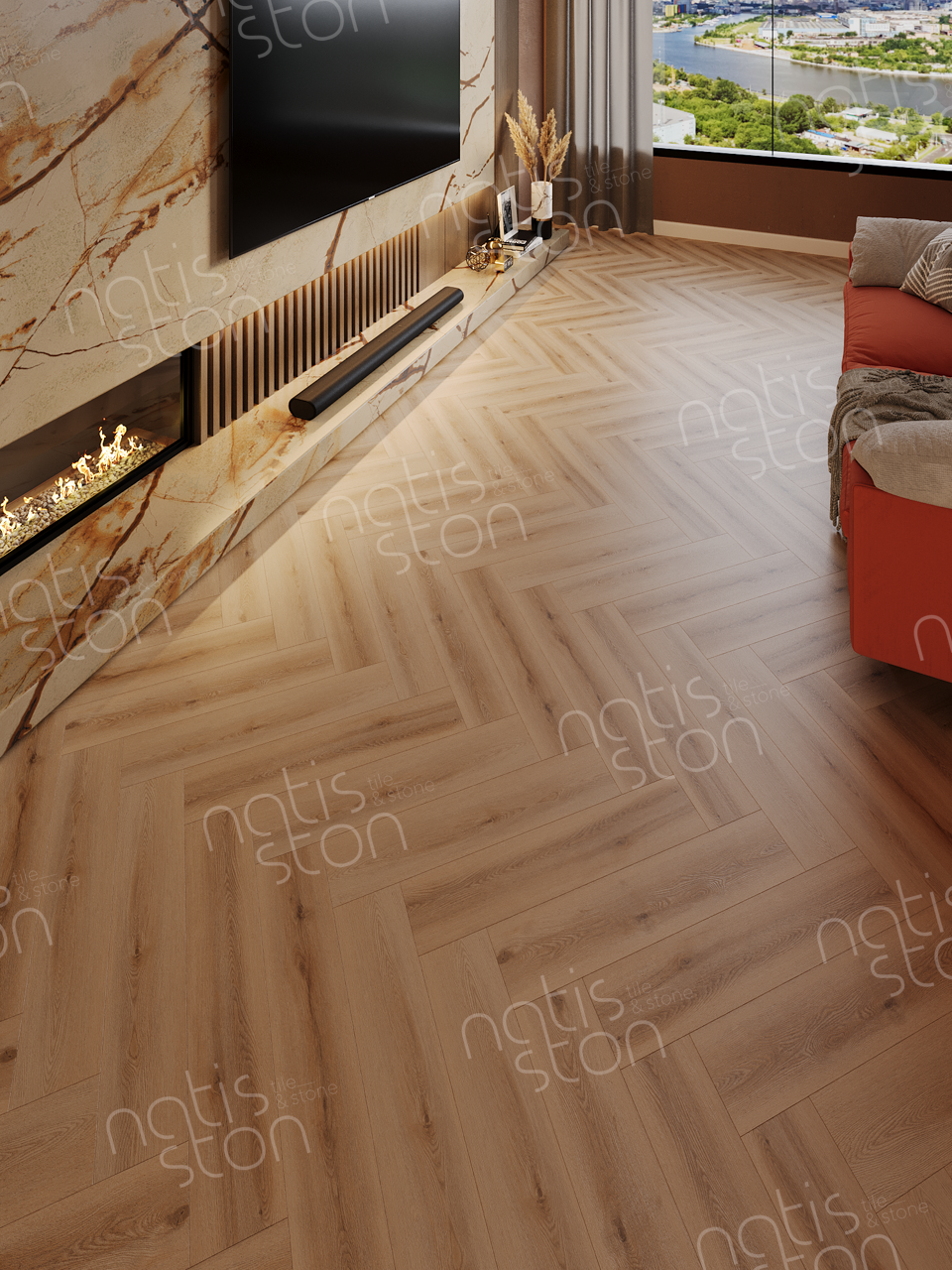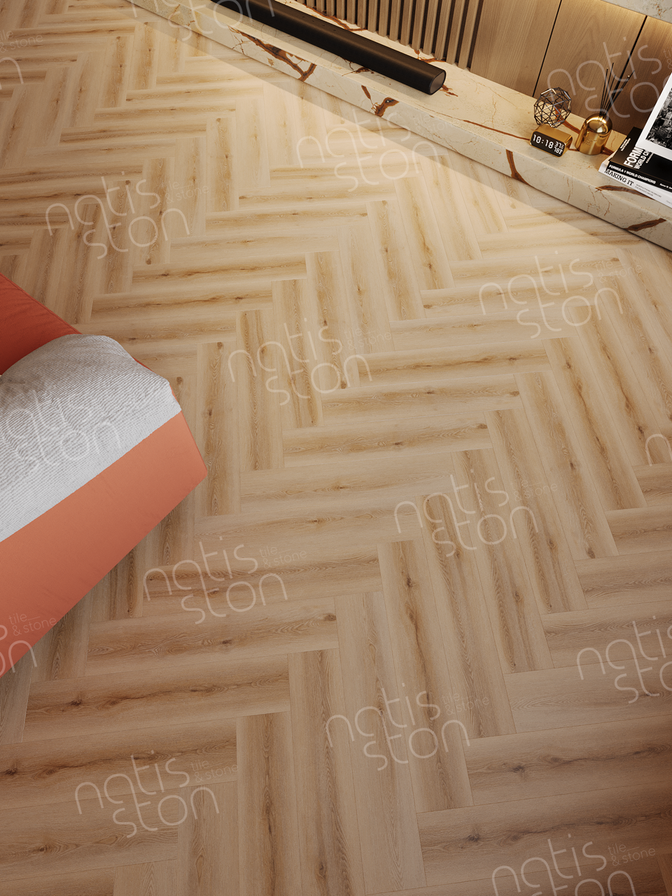 Natisston SPC - полностью водонепроницаемое* модульное покрытие с замковой системой соединения – «плавающий пол», с отличными акустическими и тепловыми свойствами. Это покрытие является прочным и жестким из-за большого содержания (более 70%) каменной крошки в составе.